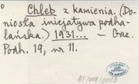 Chleb z kamienia. (Doniosła inicjatywa podhalańska.) 1931...