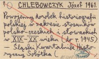 CHLEBOWCZYK Józef 1961 Powojenny dorobek historiografii polskiej w zakresie stosunków polsko-czeskich i słowackich w XIX-XX wieku (do r. 1945).