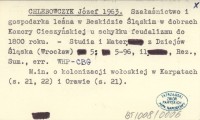 CHLEBOWCZYK Józef 1963 Szałaśnictwo i gospodarka leśna w Beskidzie Śląskim w dobrach Komory Cieszyńskiej u schyłku feudalizmu do 1800 roku.