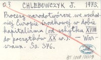 CHLEBOWCZYK J. 1975 Procesy narodotwórcze we wschodniej Europie środkowej w dobie kapitalizmu (od schyłku XVIII do początków XX w.).