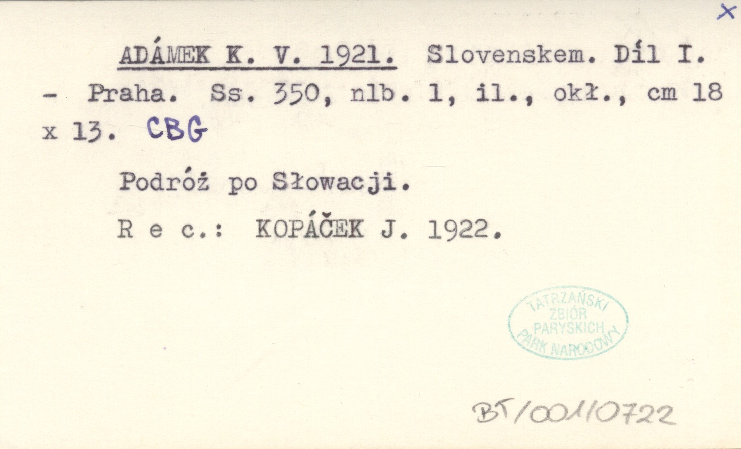 Praha , 350, [1] s., il., okł., 18x13 cm. Podróż po Słowacji. REC: KOPÁČEK J. 1922.