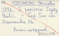 ZDZIARSKI Stanisław 1896 Z papieriw Żegoty Paulii.