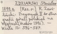 ZDZIARSKI Stanisław 1899 a [Rec. o:] R. Zawiliński: Przyczynek II do etnografii górali polskich na Węgrzech (Kraków 1896).