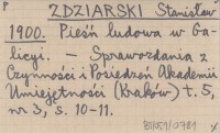 ZDZIARSKI Stanisław 1900 Pieśń ludowa w Galicyi.