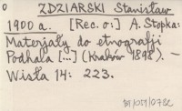 ZDZIARSKI Stanisław 1900 a [Rec. o:] A. Stopka: Materjały do etnografji Podhala [...] (Kraków 1898).