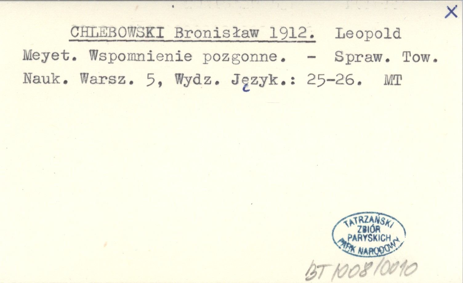 CHLEBOWSKI Bronisław 1912 Leopold Meyet. Wspomnienie pozgonne.