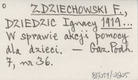 ZDZIECHOWSKI F. DZIEDZIC, Ignacy. ; 1919... W sprawie akcji pomocy dla dzieci.