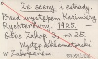 Ze sceny i estrady. Przed występem Kazimiery Rychterówny. 1925