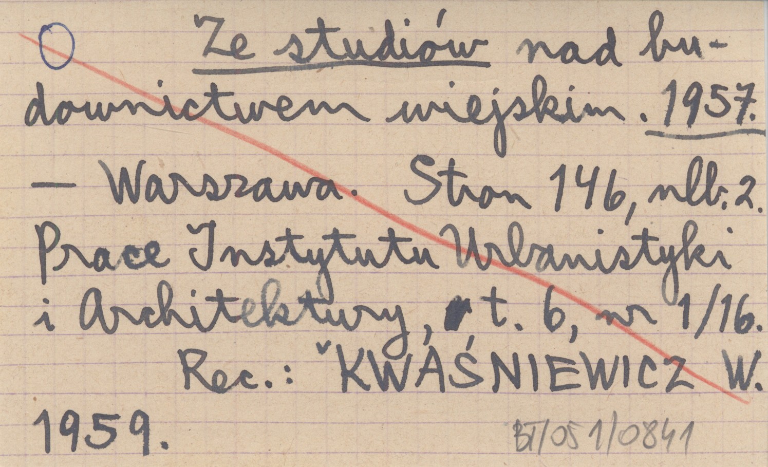 Warszawa (Prace Instytutu Urbanistyki i Architektury, t. 6, nr 1/16) , 146, [2] s. REC: KWAŚNIEWSKI W. 1959