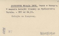 ZECHENTER Witold 1936 Cepry w Europie. W wagonie kolejki linowej na Myślenickie Turnie.