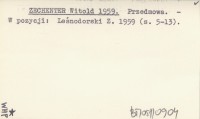 ZECHENTER Witold 1959 Przedmowa.