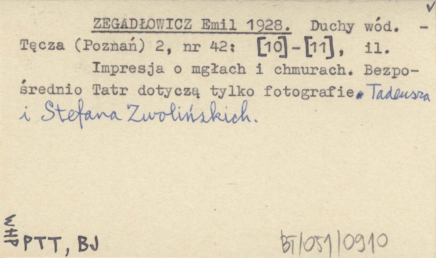 Tęcza (Poznań) , 2, nr 42: [10]-[11], il. Impresja o mgłach i chmurach. Bezpośrednio Tatr dotyczą tylko fotografie Tadeusza i Stefana Zwolińskich.