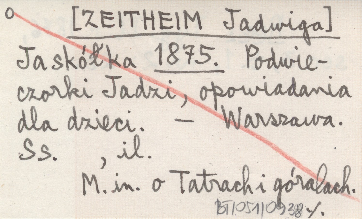 Warszawa , 173 s., il., 8°. M. in. o Tatrach. Z 6 drzeworytami. REC: Biblioteka Warszawska 1875, t. 1: 187 ; Tygodnik Illustrowany 1876, ser. 3, t. 1, nr 2: 23 ;