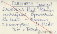 JASKÓŁKA [ZEITHEIM Jadwiga] 1875 Podwieczorki u Jadzi. Opowiadania dla dzieci.