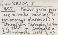ZEJDA J. 1955... Rozbor jarní populace norníka rudého (Clethrionomys glareolus) v Tatranském národním parku v r. 1955.