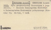 ZEUSCHNER Ludwik [ZEJSZNER Ludwik] 1833 Opis geognostyczny Czorsztyna i iego okolic.