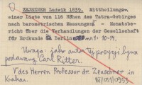 ZEJSZNER Ludwik 1839 Mittheilungen einer Liste von 116 Höhen des Tatra-Gebirges nach barometrischen Messungen des Herren Professor dr. Zeuschner in Krakau.