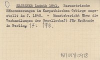 ZEISZNER Ludwik [ZEJSZNER Ludwik] 1841 Pomiary barometryczne Karpat w roku 1840.
