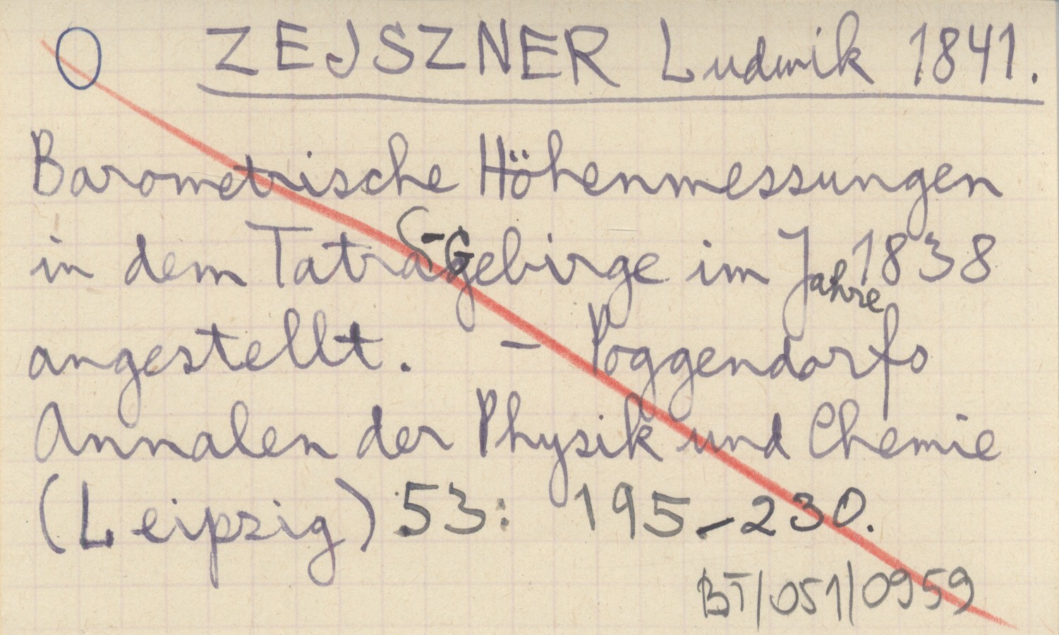 ZEJSZNER Ludwik 1841 Barometrische Höhenmessungen in dem Tatra-Gebirge im Jahre 1838 angestellt.