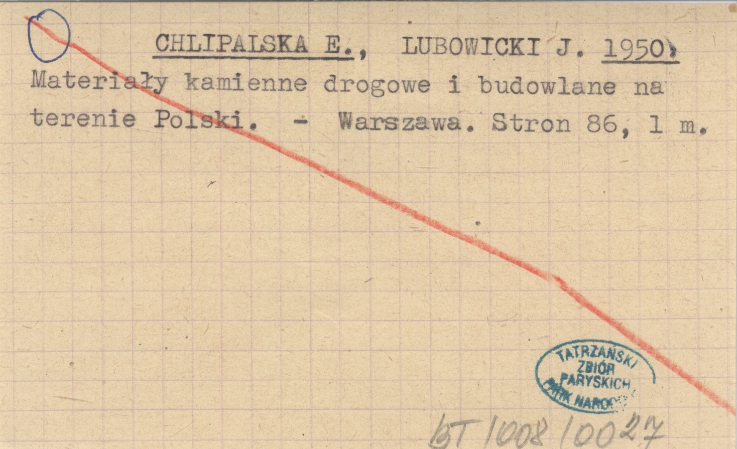 CHLIPALSKA E. LUBOWICKI, J. ; 1950 Materiały kamienne drogowe i budowlane na terenie Polski.