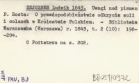 ZEJSZNER Ludwik 1843 Uwagi nad pismem P. Rosta: O prawdopodobieństwie odkrycia soli i solanek w Królestwie Polskiem.