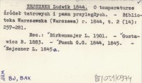 ZEJSZNER Ludwik 1844 O temperaturze źródeł tatrowych i pasm przyległych.