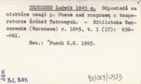 ZEJSZNER Ludwik 1845 a Odpowiedź na niektóre uwagi p. Pusza nad rozprawą o temperaturze źródeł Tatrowych.