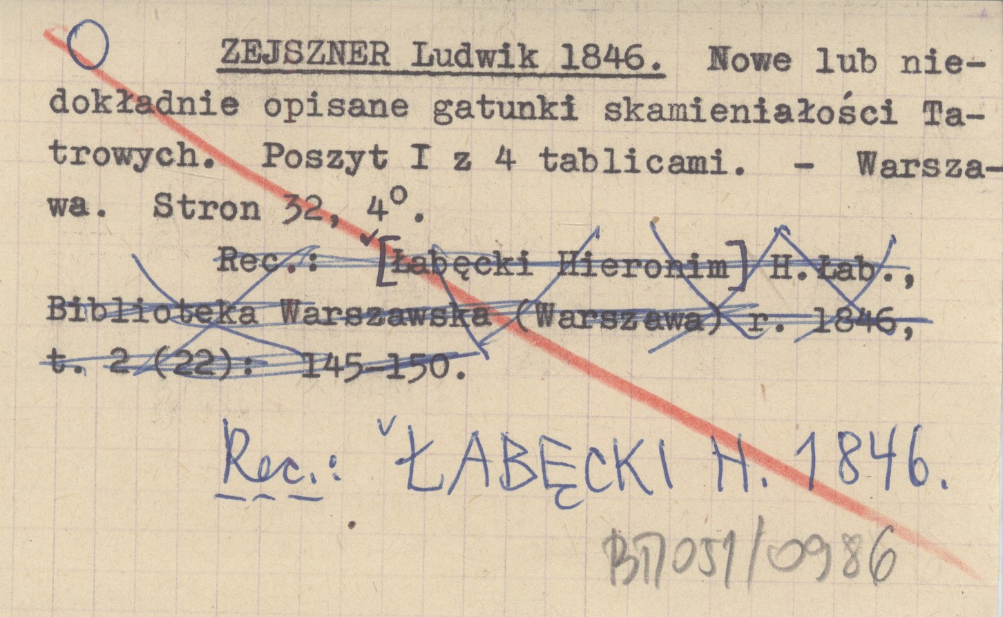 ZEJSZNER Ludwik 1846 Nowe lub niedokładnie opisane dotąd gatunki skamieniałości Tatrowych.
