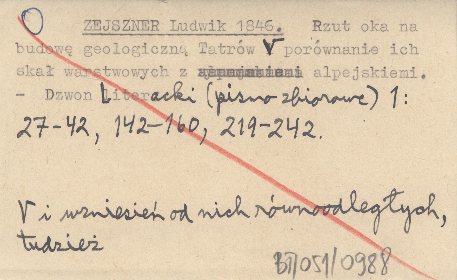 ZEJSZNER Ludwik 1846 Rzut oka na budową geologiczną Tatrów i wzniesień od nich równo-odległych, tudzież porównanie ich skał warstwowych z Alpejskiemi.