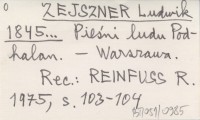 ZEJSZNER Ludwik 1845... Pieśni ludu Podhalan.