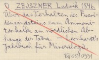 ZEJSZNER Ludwik 1846 Ueber das Verhältniss des Fucoidensandsteines zum Ammonitenkalke am nördlichen Abhange der Tatra und über das relative Alter der Sedimente.