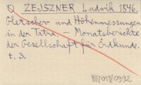 ZEJSZNER Ludwik 1846 Gletscher- und Höhenmessungen in der Tatra.