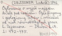 [ZEJSZNER Ludwik] 1846 Ogłoszenie o wyjść mającem dziele pod napisem: Opis fizyczny i geologiczny Tatrów i wzniesień od nich równoodległych przez L. Zejsznera.