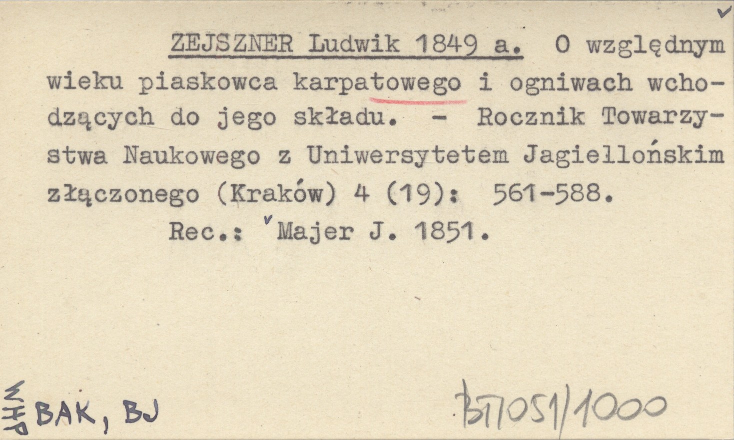 ZEJSZNER Ludwik 1849 a O względnym wieku piaskowca karpatowego i ogniwach wchodzących do jego składu.
