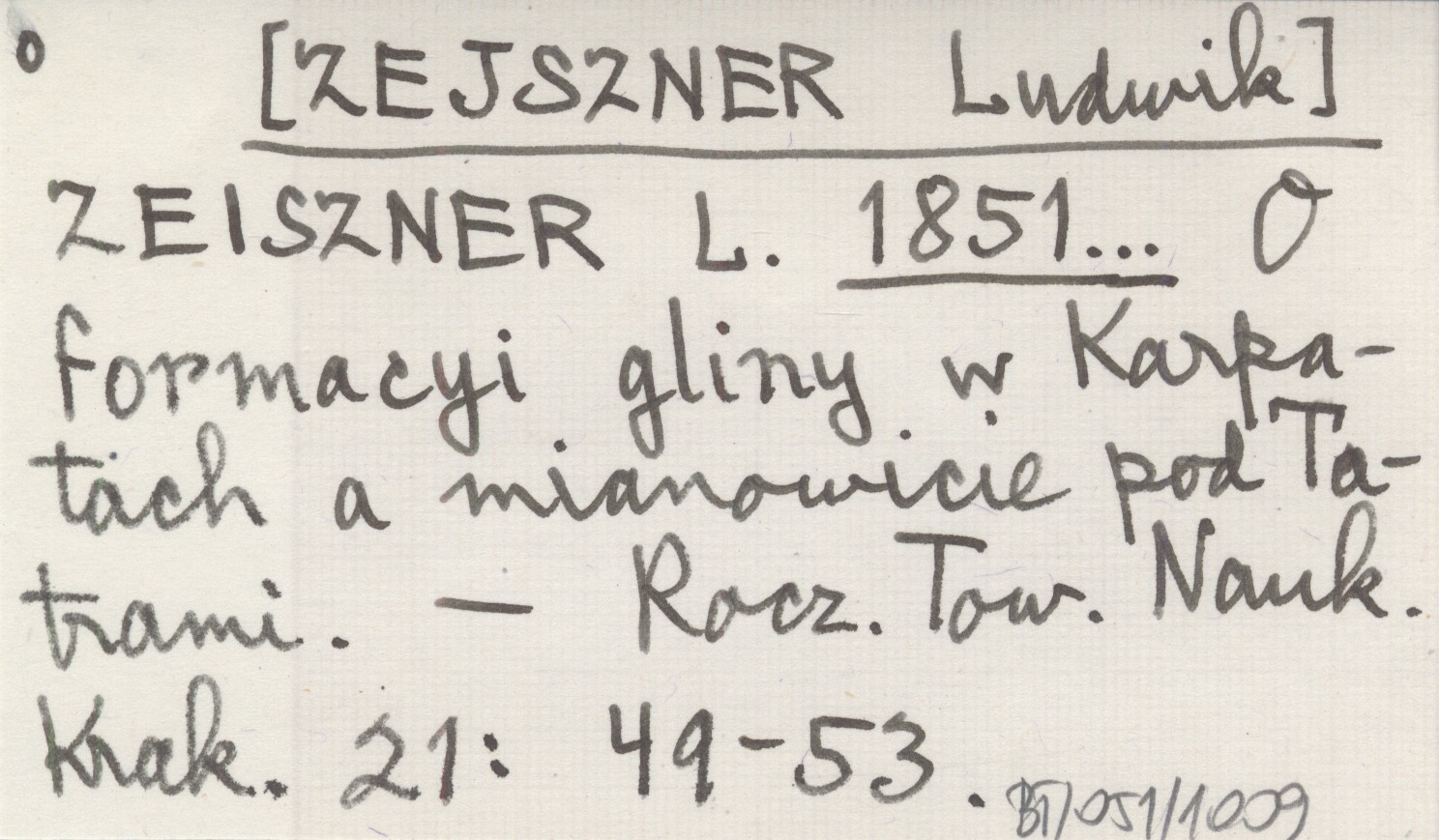 ZEISZNER L. [ZEJSZNER Ludwik] 1851... O formacyi gliny w Karpatach a mianowicie pod Tatrami.
