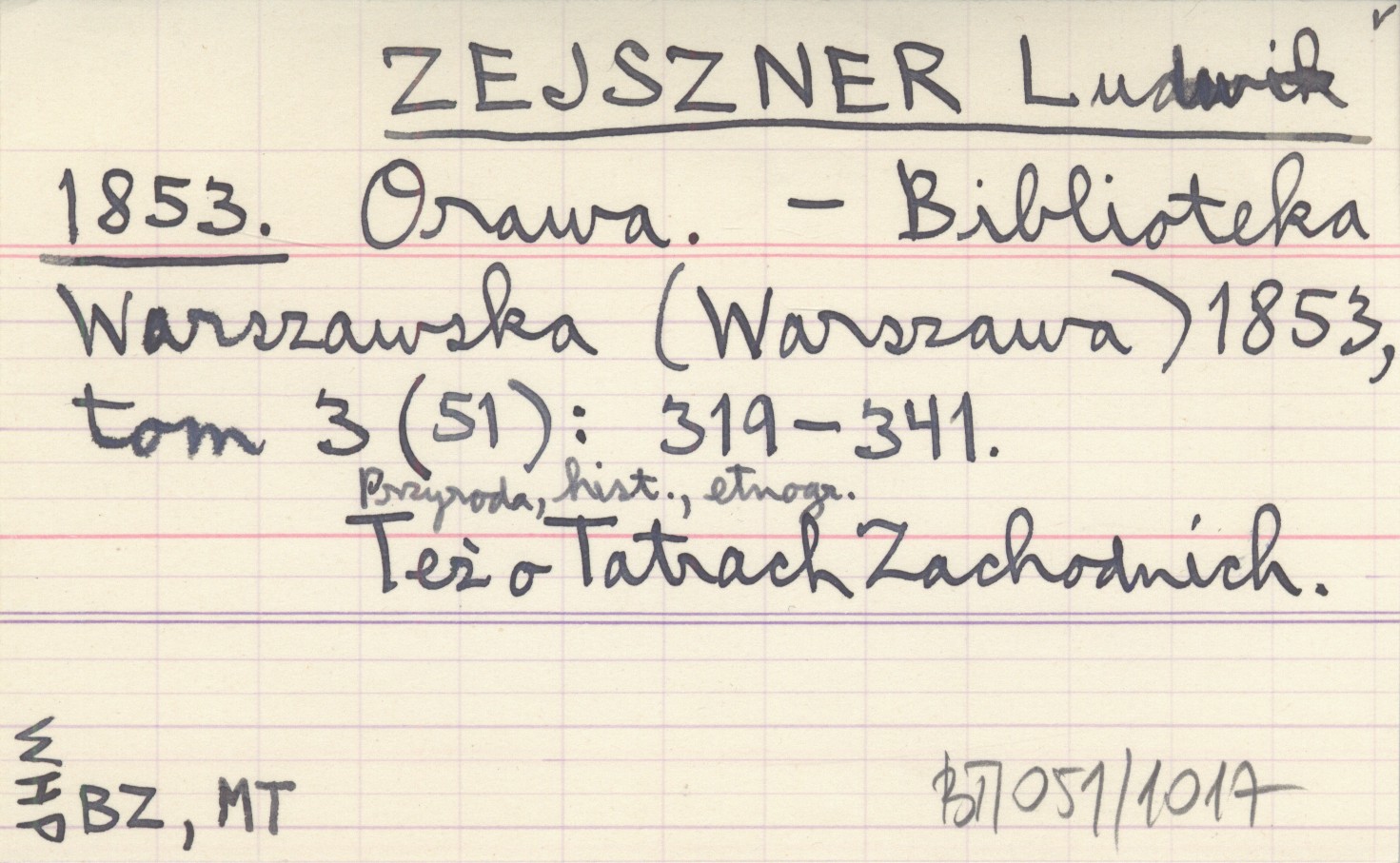 Biblioteka Warszawska (Warszawa) , T. 3 (51): 319-341. Przyroda, historia, etnografia. Też o Tatrach Zachodnich.