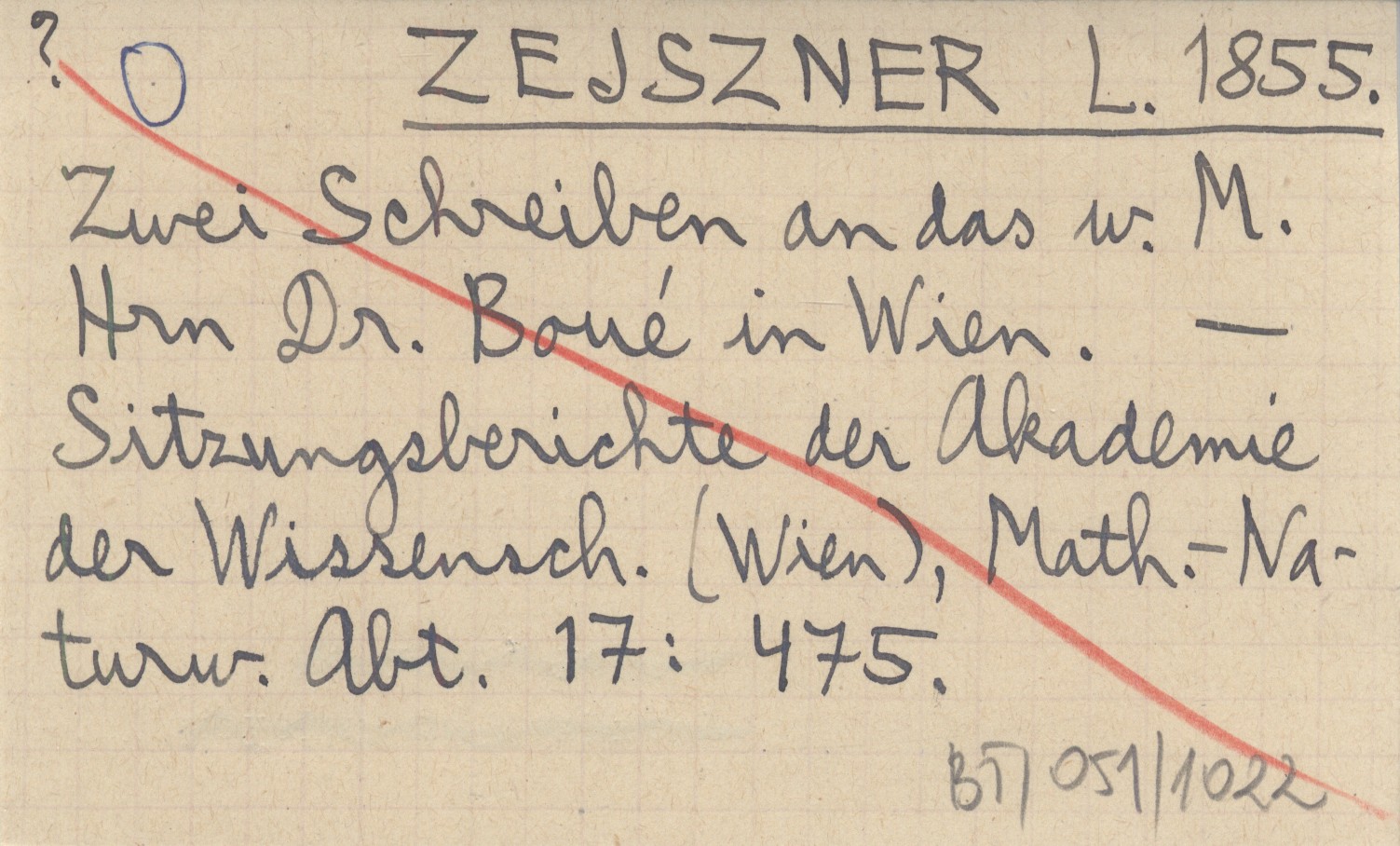 ZEJSZNER L. 1855 Zwei Schreiben an das w. M. Hrn Dr. Boué in Wien.