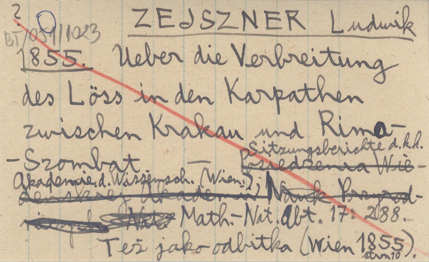 ZEJSZNER Ludwik 1855 Ueber die Verbreitung des Löss in den Karpathen zwischen Krakau und Rima-Szombat.