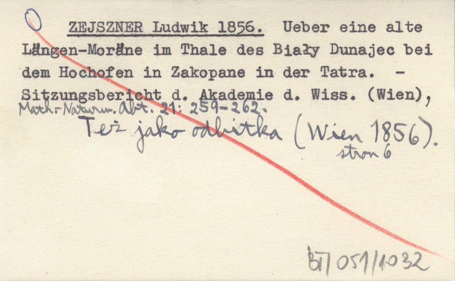 Sitzungsberichte der Akademie der Wissenschaften in Wien, Mathem.-Naturw. Classe (Wien) , 21: 259-262. Też jako odbitka: (Wien 1856, 6 s.)