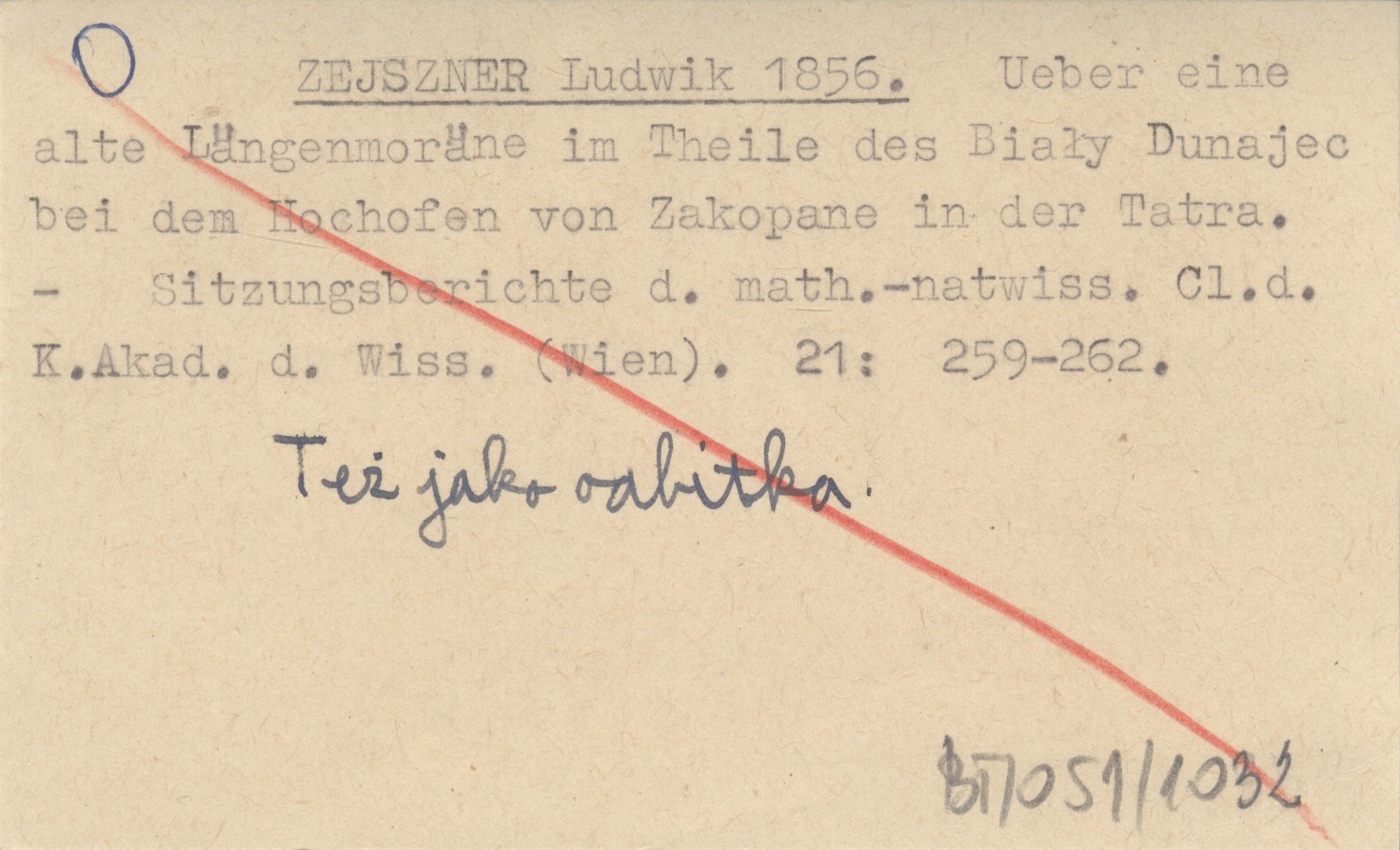 ZEJSZNER Ludwik 1856 Ueber eine alte Längen-Moräne im Thale des Biały Dunajec bei dem Hochofen in Zakopane in der Tatra.