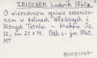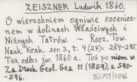 ZEISZNER Ludwik 1860 a O wierzchniem ogniwie eocenicznem w dolinach Właściwych i Niżnich Tatrów.