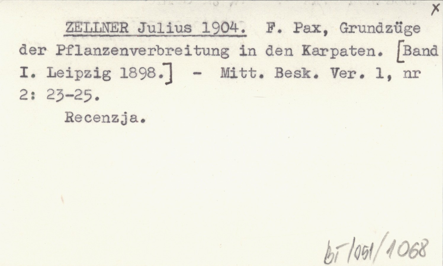 ZELLNER Julius 1904 F. Pax, Grundzüge der Pflanzenverbreitung in den Karpaten. [Band I. Leipzig 1898.]