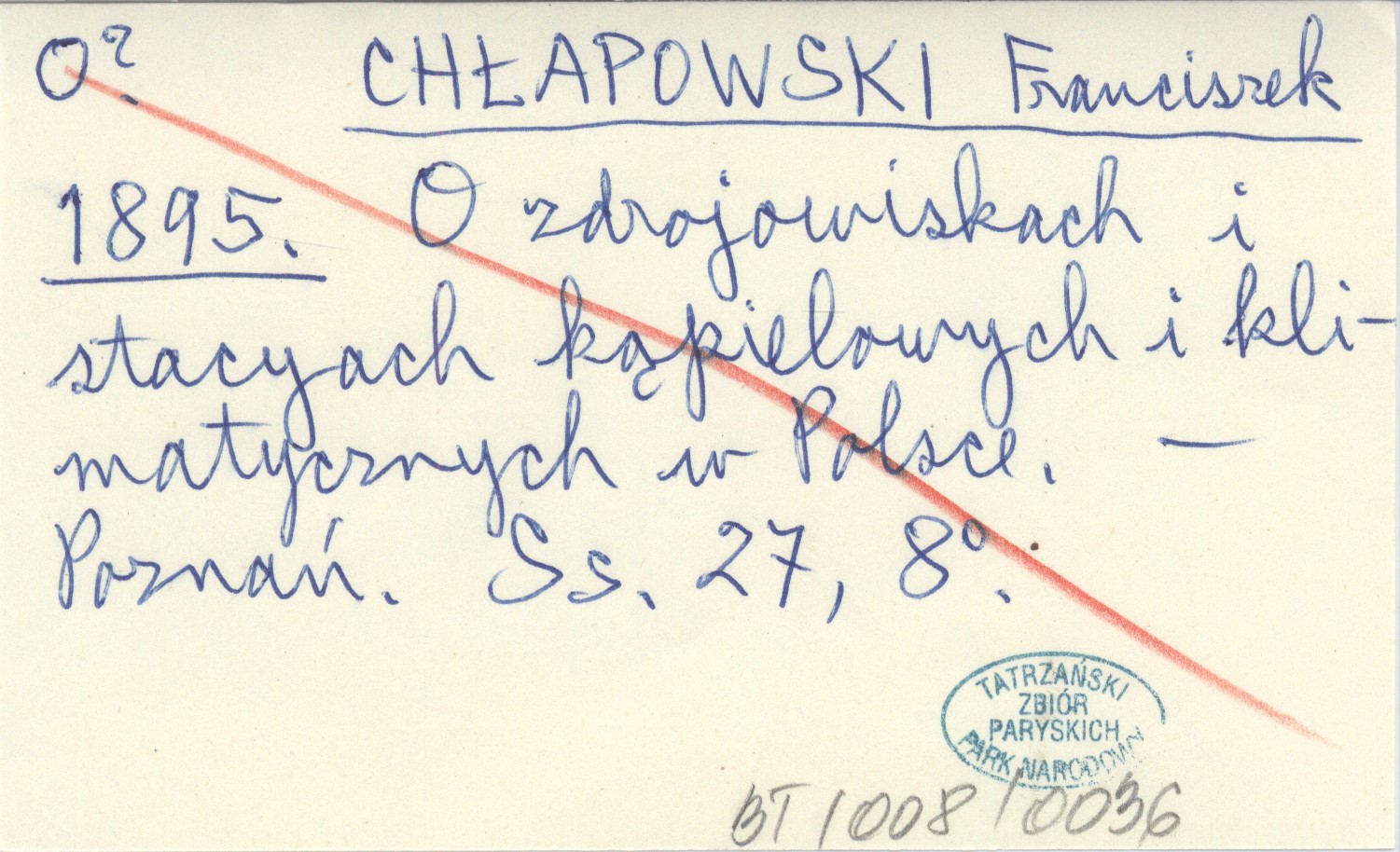 CHŁAPOWSKI Franciszek 1895 O zdrojowiskach i stacyach kąpielowych i klimatycznych w Polsce.