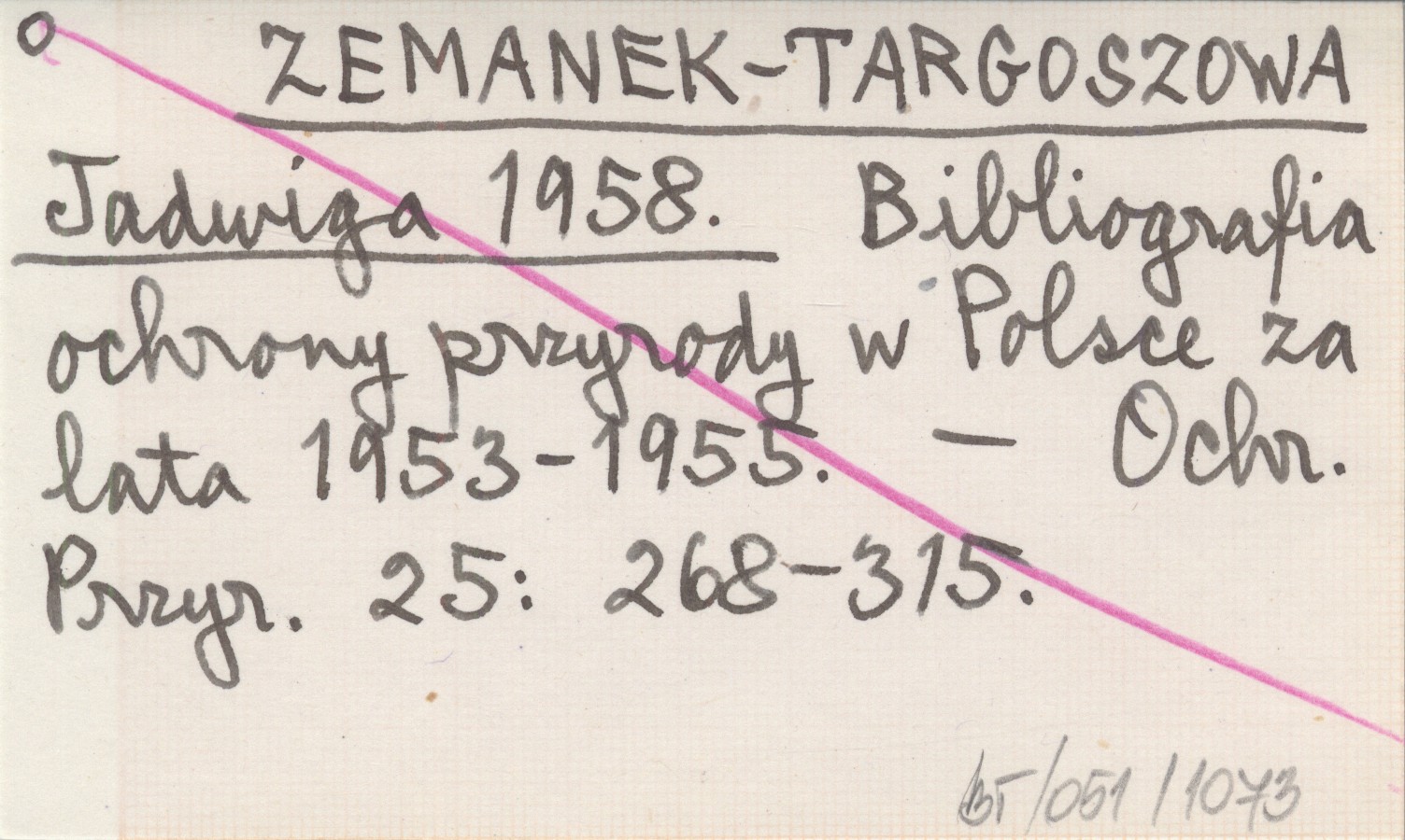 ZEMANEK-TARGOSZOWA Jadwiga 1958 Bibliografia ochrony przyrody w Polsce za lata 1953-1955.