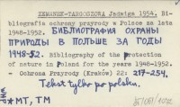 ZEMANEK-TARGOSZOWA Jadwiga 1954 Bibliografia ochrony przyrody w Polsce za lata 1948-1952. Bibliografija ochrany prirody v Pol'še za gody 1948-52. Bibliography of the protection of nature in Poland for the years 1948-1952.
