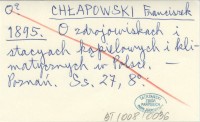 CHŁAPOWSKI Fr. 1894 O zdrojowiskach i stacjach kąpielowych i klimatycznych w Polsce.
