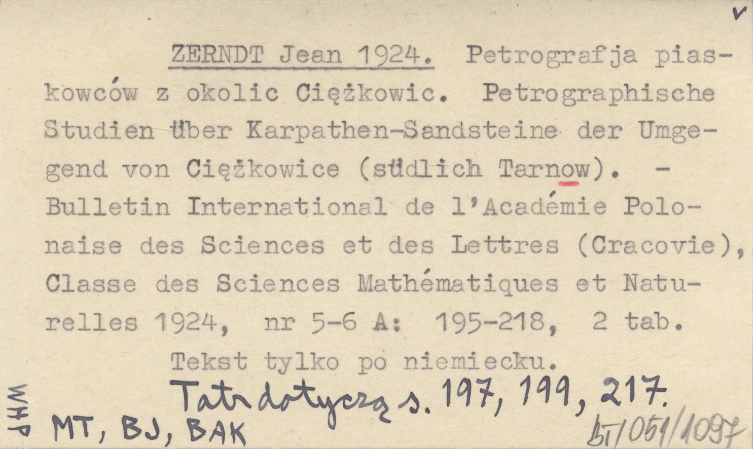 ZERNDT Jean 1924 Petrografja piaskowców z okolic Ciężkowic. Petrographische Studien über Karpathen-Sandsteine der Umgegend von Ciężkowice (südlich Tarnow).