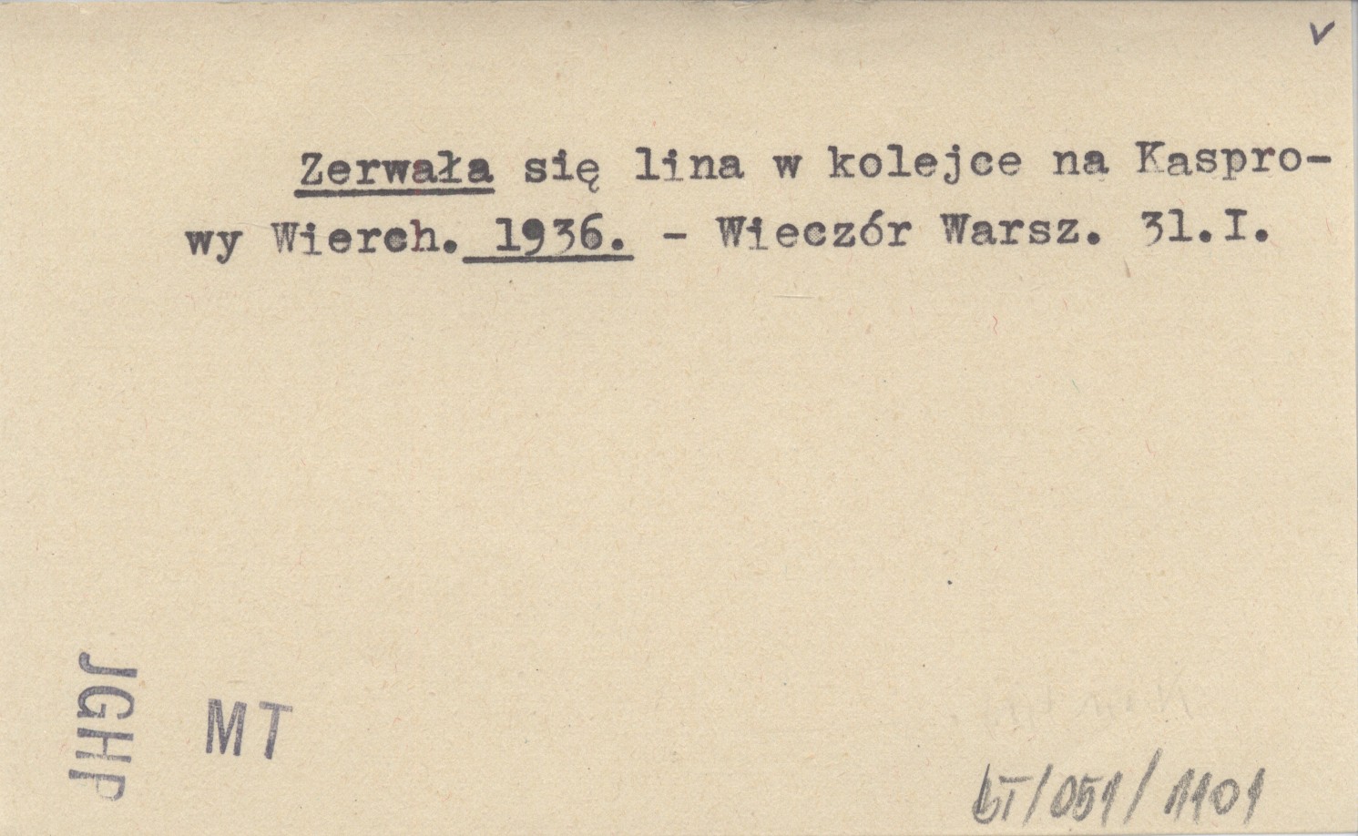 Zerwała się lina w kolejce na Kasprowy Wierch. 1936