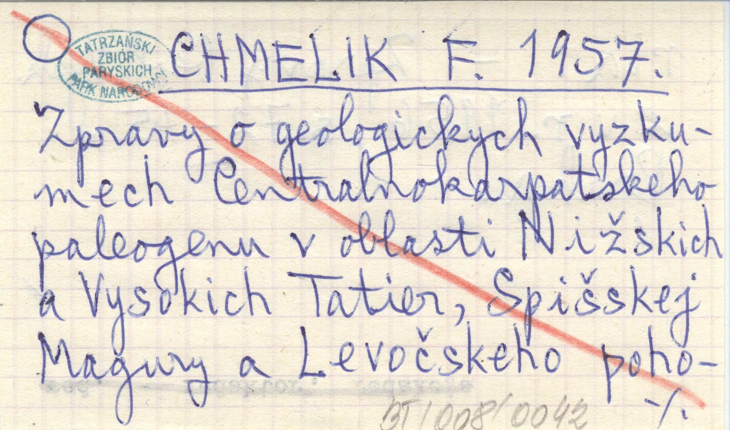 CHMELIK F. 1957 Zpravy o geologickych vyzkumech Centralnokarpackecho-paleogenu v oblasti Nižskich a Vysokich Tatier, Spišskej Magury a Levočckeho pohoria.