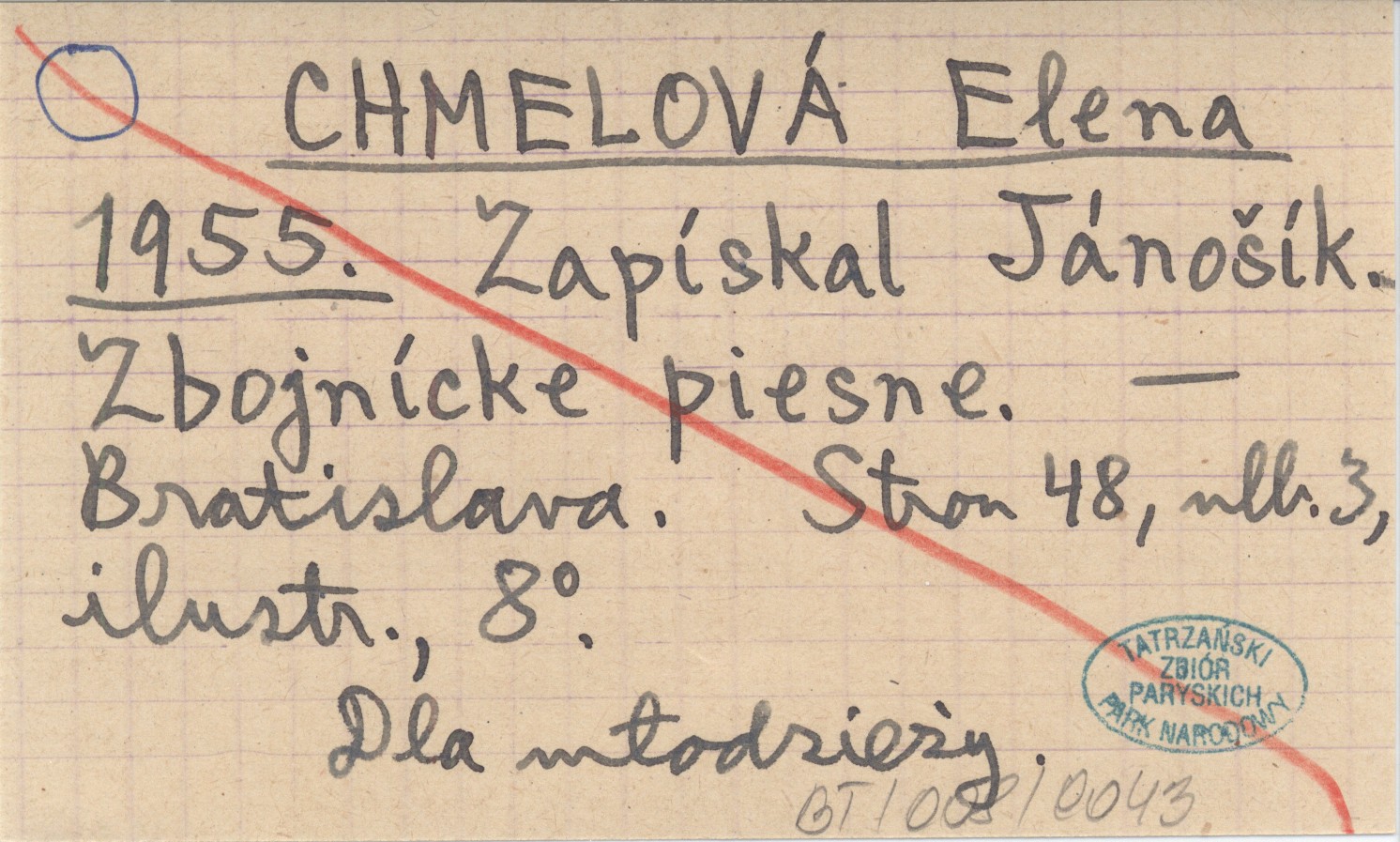 CHMELOVÁ Elena 1955 Zapískal Jánošík. Zbojnícke piesne.